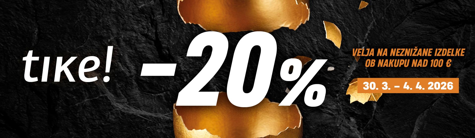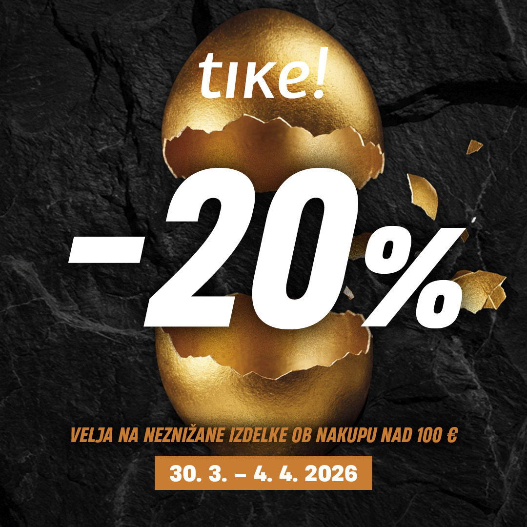 20% popust se obračuna ob nakupu neznižanih izdelkov nad 100 EUR. Popust ne velja za TOP IZBOR, SPRAYGROUND, STANLEY CUP in darilne kartice. Popust se obračuna pri blagajni. Ostali popusti se ne seštevajo, akcije se izključujejo. Popust velja od 30. 3. do 4. 4. 2026.